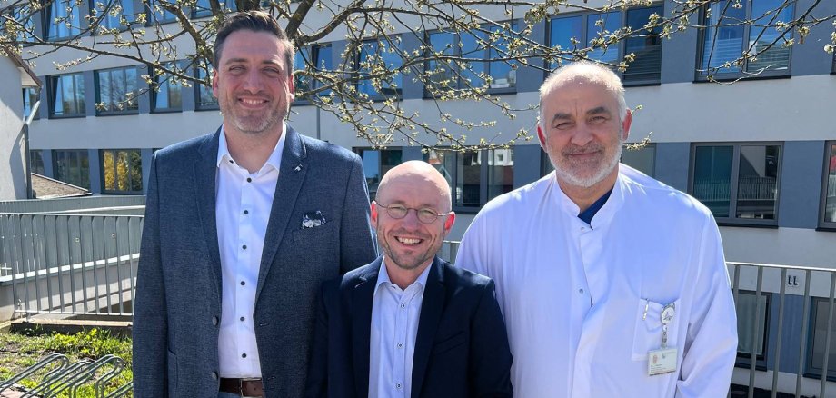 Foto: Heiko Scherag (links) ist neuer Kaufmännischer Direktor im Paulinenstift. Gemeinsam mit Pflegedirektor Roman Waldorf (Mitte) und dem Ärztlichen Direktor Dr. med. Zlatko Neckov bildet er das Direktorium.