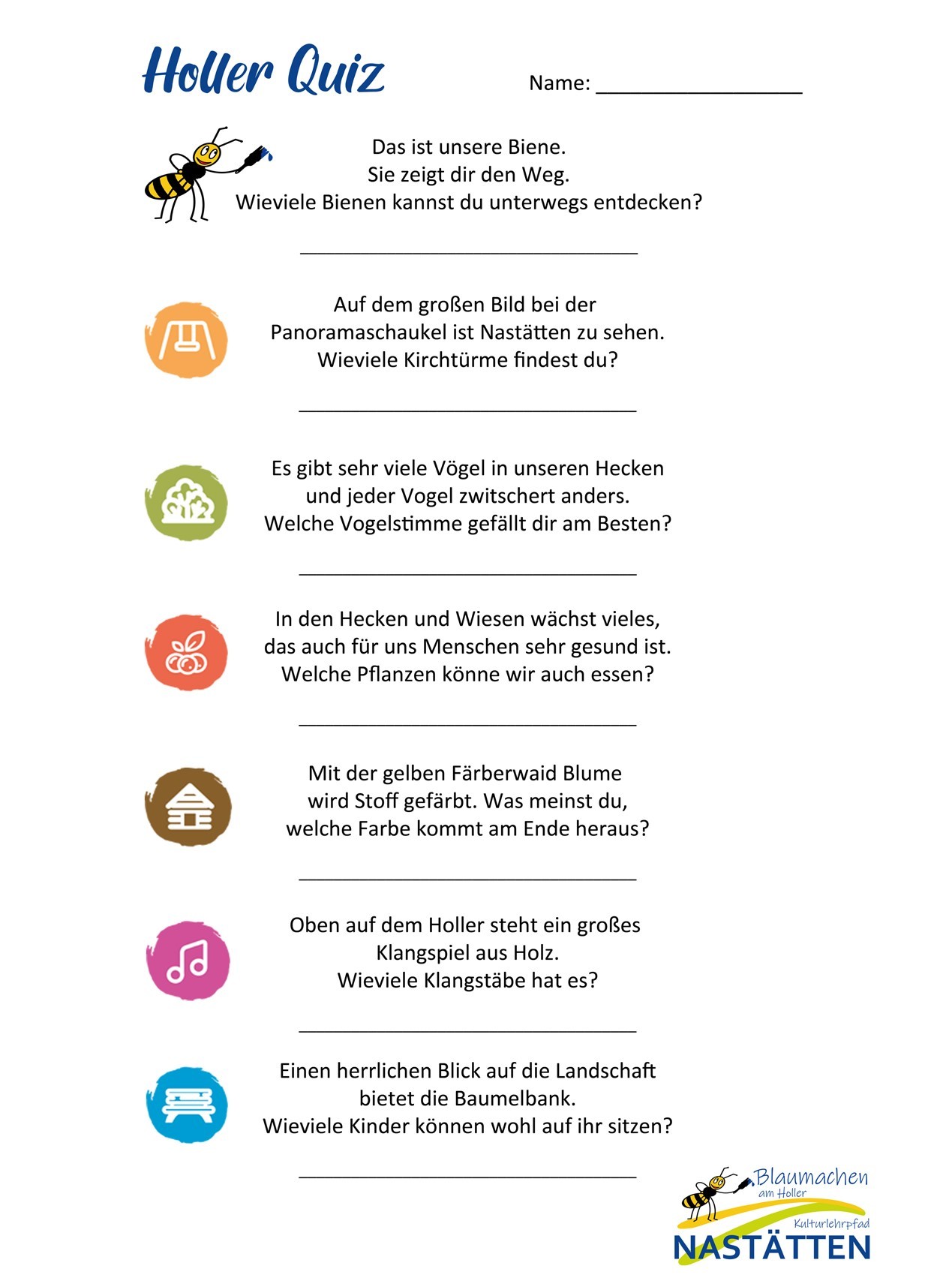 Hier verlassen wir kurz den Rundweg in Richtung Holler Hütte. Dort angekommen gibt es einiges zu erleben. Neben Klangstäben und einer Aussaat von Färber Waid finden wir auch eine Hinweistafel zum Beobachtungsstand der Luftwaffe im 2. Weltkrieg. Darüber hinaus ist die Holler Hütte auch das Bindeglied zu weiteren „Blaumachen Rundwegen“ und zum Bucher Kräuterpfad.