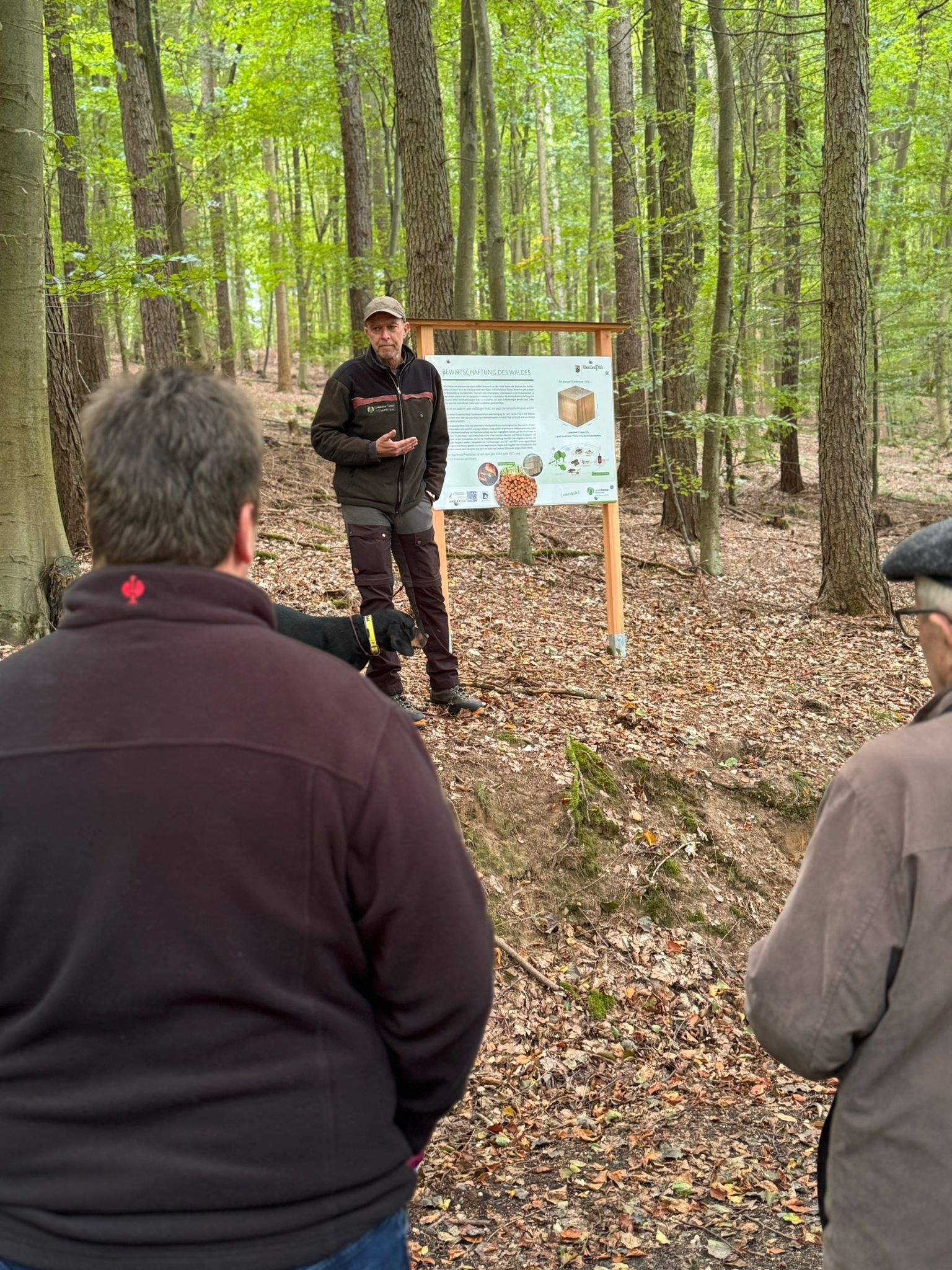 Neben Hinweisen zu heimischen oder selteneren, fremdländischen Baumarten haben die Waldbesucher die Möglichkeit, sich über die Funktionen des Waldes, die Auswirkungen der Klimaveränderungen im Wald und über die forstlichen Maßnahmen zum Umbau des Waldes hin zu einem klimastabilen Ökosystem zu informieren.